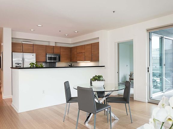 Sunlight is plentiful from every room of this 2-bedroom, 2 and a half-bath urban oasis. There is a Zen like quietness in this David Baker retreat. From the floor to ceiling windows, natural light illuminates all the designer finishes, from the bamboo flooring, the Studio Becker cabinets, Terrazzo tile, and Grohe fixtures. Generous granite countertops, abundant cabinetry, stainless steel appliances, and gas cooking are the perfect mixture of elegance and function in the open kitchen. The kitchen and living design allow perfect interaction and plenty of space to gather. Step out on the balcony to take in the fresh air. The bedroom designs are perfect, allowing privacy for guests and plenty of room for an office or even home gym. With a 98-walk score and convenient 5-minute walk to the Ferry Terminal or 12th St. BART, and a 20-drive to SF, getting around the bay doesn't get much better than this. Prepare to get swept away by the top-of-the-line experience, allowing for an unprecedented connection between relaxed living and a spectacular urban contemporary lifestyle that only Oakland can offer. Renter is responsible for electricity, internet and optional parking space. Owner provides water, trash, sewage, and gas.