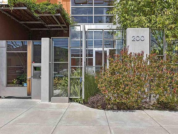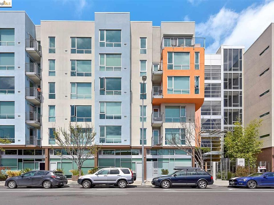 Stand out from the crowd at 200 2nd, the utmost in modern living, with this corner, end-unit 2+/2 condo by award-winning architect David Baker. With this rarely available location and floor plan, every detail of the home shows the designer's touch, from the thoughtful layout to the high-end cabinetry by Studio Becker, the luxury finishes and walls of windows with sunny outlooks. Open plan living with extras like a patio accessed from two rooms, and a bonus room with flexible uses. Each bedroom has custom Elfa closets--the master with walk-in closet. The master bath features a double-shower and double-vanity. The creative team went above and beyond with the building's design, with its colorful exterior, impressive glass and steel entryway by local artisans Sand Studios, hallways with custom lighting and murals by local artists. The unit includes washer/dryer and one-car garage parking with bike rack. 92 Walk Score plus every transportation option--Amtrak, BART, SF Ferry & more.