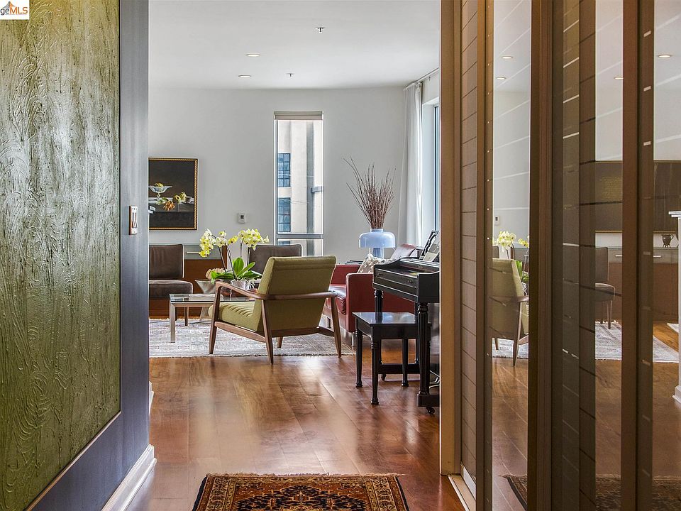 This unit is now back - after being off the market since mid December. Impressive David Baker designed Condo - this pristine ALL LEVEL end-unit has 2 bedrooms + Den and 2.5 baths and balcony. Kitchen open to spacious "great room" - open plan dining and living rooms. Very sophisticated light filled apartment with exotic doussie hardwood floors in common areas and 100% chemical free Wool carpets in bedrooms. Kitchen countertops are honed "absolute black" granite, appliances are all stainless steel, cabinets by Studio Becker. There is in-unit Miele washer & dryer. Exceptionally well maintained building, fully sprinklered with elevator, & handicap assessable. Double security entry area with Video surveillance. 1 dedicated parking place and locked storage in Secure garage included.