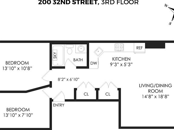 This 900 square foot apartment home has 2 bedrooms and 1.0 bathrooms. This home is located at 200 32nd St #3, Brooklyn, NY 11232.