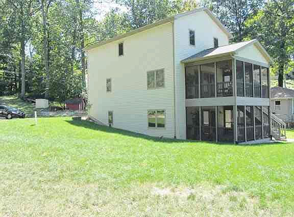 Here Is the buy of the year..Direct waterfront on 2 lots with 55 foot of channel and dock. 5 bedrooms, 3 baths, year round and only 6 years old.everything is like new. Its perfect for entertaining with a full finished walkout lower level leading directly to the dock. The home was designed so it could be used as a duplex or rental. The lower level is all self contained with a full kitchen, living area, bedroom and full bath with its own private entrance. The main level consists of a full kitchen, living rm, dining area, master bedroom with bath, and laundry room. Sliders lead out to the private screened in porch to enjoy 3 seasons of outdoor living. The upper level has 3 bedrooms and a full bath. All of the closets are good size with closet tamers installed. Forced air heat and central air, water manifold distribution system, large 50 gallon water heater are all located in the utility room. This is a very nice home with so much potential for such a small price. To be on the Lake James C