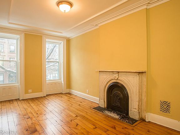 Located in a beautiful brownstone on a landmarked block in Park Slope, this sunny, floor through 1.5BR apartment has hardwood floors, two decorative fireplaces, original moldings and shutters. The updated kitchen has a dishwasher, granite countertops and a large window. The spacious east-facing bedroom has two windows, plus a smaller room off of it that would function well as an office or nursery. Union Market and the Park Slope Food Coop are just steps away while Prospect Park, the 2,3, R, B and Q trains, and tons of great shops and restaurants are all nearby as well. Heat and hot water are included. Cats and dogs are allowed upon approval with a small pet deposit.