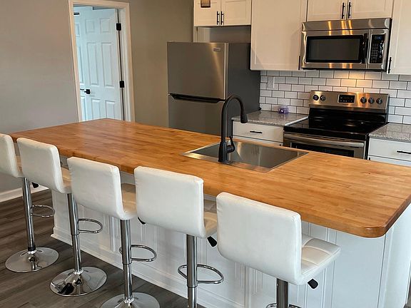 Stunning freshly remodeled 2 bedrooms 1 full bath apartment in the Village of Solvay. Great location in the heart of the Village on the very quiet Sixth Street. Right near Fairgrounds. Only 5 minutes to Destiny USA mall/Downtown, Camillus area restaurants and 10 minutes away from SU. Only minutes away from major highway I-690. Fully renovated spacious second floor apartment. Open concept kitchen with 5-seater butcher block island, granite countertops, exquisite subway tile backsplash, stainless steel appliances including gas range, over the range microwave, dishwasher and full size refrigerator. Modern LED pendant lights above the island and contemporary bar stools create unique atmosphere. Spacious kitchen is combined with formal dining room and overlooks large living room with beautiful brand new energy efficient windows and roomy coat closet. Living room opens up to sun room with all replaced energy efficient windows and blinds. Spacious master bedroom with beautiful vinyl flooring throughout and large closet with shelving and extra storage space. Good size second bedroom with shelving is located right off the kitchen. Full bathroom with gorgeous vanity, modern LED light fixture above matching mirror, beautiful tile work and built-in soap nook in the bath bath with tub and glass doors. Plenty of windows for natural light. LED light fixtures alongside with recessed lighting throughout the apartment. Extra storage space. Spacious back porch off the kitchen is overlooking the backyard. Energy efficient washer and dryer are in the unit. Attic for extra storage Off-street parking. Nice backyard Enjoy cheap utilities with Solvay Electric. Rent includes water, trash, snow removal and landscaping. If interested in filling out application and scheduling showing please respond with following information Who will the apartment be for? Monthly income and occupation? Do you have any pets ? If so, indicate the breed. How soon are you looking to move ? * No smoking. * 1 year lease. * Credit and background check required. * First month rent+security deposit required prior to move in. Please contact Alona Cuse Realty LLC Coral Real Estate LLC Like us on Facebook 12-24 months lease Landlord pays for water, trash pick up and snow removal
