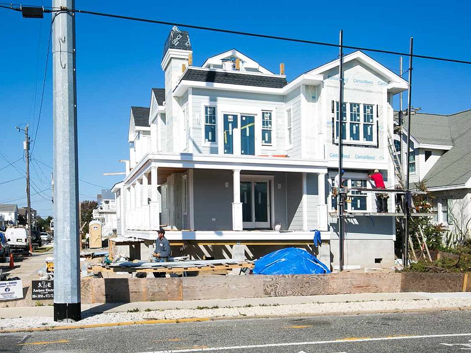 The perfect beach home! Built by Seashore Home builders this Custom home is located less than 2 blocks to the beach and a few blocks to Downtown shopping and entertainment district. The upside down style layout has 5 bedrooms and five full baths and two powder rooms. The first floor has 4 bedrooms all ensuite and a powder room. The family room leads to the rear yard swimming pool and entertaining area. The floors will hardwood flooring, solid core doors, custom trim and woodwork, and tiled and stone baths. The second floor with a custom staircase leading to a gourmet kitchen with hand crafted custom wood cabinetry and high-end appliances and Center Island with natural stone counters. The huge great room has a gas fireplace with hardwoods floors throughout. A large second floor deck with a view of the ocean. A huge master suite with walk-in closet and lavish master bath. Another set of steps leads to a rooftop entertainment deck with Bay and Ocean views. The rear yard has a large swimming pool with cabana and wet bar area. All situated on a 60 x 110 corner lot. Beautifully landscaping will make this a perfect summer retreat. Early spring 2018 delivery.