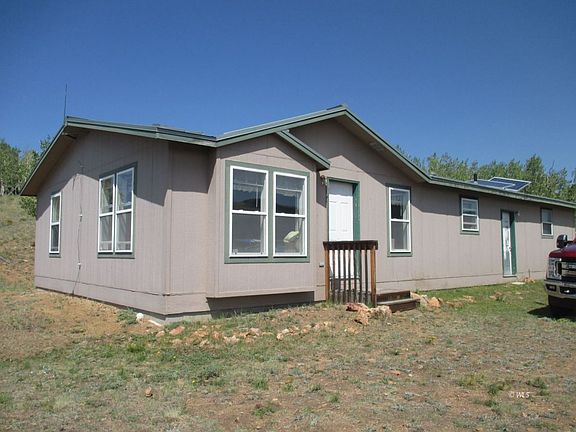 This 1,008 sq. ft. 2 bedroom, 1 bath home sits on 38.15 acres and is located in Aspen Mountain Ranch. If you are looking for peace and quiet, beautiful mountain setting then this is the home for you. It also has an attached 2 car garage. This one is a "must see"!