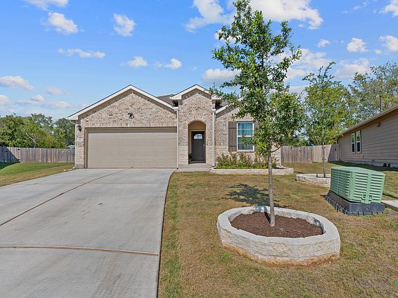Move-in ready one-story with bright, open-concept living! The island kitchen features white shaker cabinets, granite counters, stainless appliances, and pendant lighting—perfect for gatherings. Relax in the private primary suite with dual sinks, an oversized walk-in shower, and a generous closet. Versatile secondary bedrooms (ideal for guest room, nursery, or home office), plus a dedicated laundry room and attached garage. Out back, enjoy a fully fenced yard with a covered patio and storage shed—plenty of space to play, garden, or entertain. Tucked on a quiet street just minutes from downtown Lockhart, BBQ favorites, parks, schools, and quick SH-130 access for an easy commute.