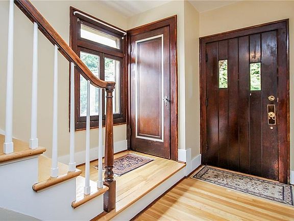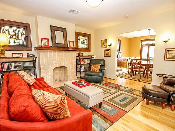 Walk onto the breezy front porch of this charming brick home. Step into the entry and admire the beautiful refinished hard wood floors through out the house. The living rooms offers a beautiful fireplace and mantle with stain glass windows. Adjacent dining room is a great space for get togethers and is open to the large eat in kitchen with plenty of cabinets for storage and great counter space too. Watch the 4th of July fireworks from the freshly painted rear deck that overlooks a great rear yard. The lower level offers a newer full bathroom and a finished game room, separate office space and other storage/utility rooms. Upstairs you will find three spacious bedrooms on the second floor and a pretty full bathroom plus a larger bedroom on the third floor with carpeting. Other great features include central air, newer hot water heater, many freshly painted areas of interior and exterior (front porch & deck), Many areas of exterior have been professionally pointed.