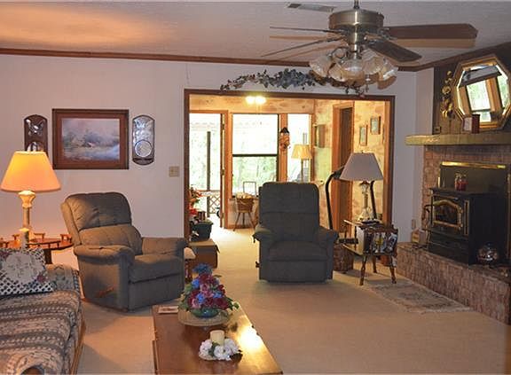 If you are looking for quiet and solitude this is the place. 3/2/2 brick home in a wonderful country setting on 4.06 acres. Fence, pond and scattered trees. Large covered deck, large kitchen with island and lots of cabinets. Cabinets with hidden pullout drawers under the island and stovetop area. Breakfast/dining area. Living area with fireplace and den/flex room. Large utility room with lots of cabinets. Detached garage with shop area.