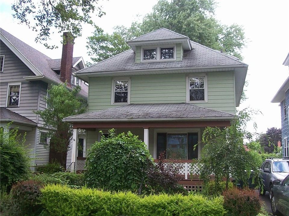 Best of new and old worlds. Stained glass, modern kitchen and utilities, windows, doors and siding, 90 year old gleaming refinished oak floors. lush gardens in back yard with hot tub and multi level deck. remodeled kitchen with glass tile backsplash raised breakfast bar, slider to deck and buffet bar all open and nicely blended with old style beamed ceiling dining room. Updated baths and additional finished space on top and bottom floors. one bedroom up has enclosed sun space overlooking backyard.