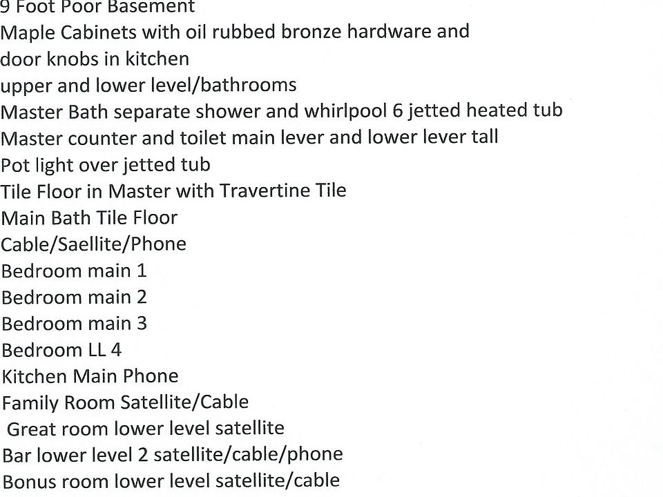 Atrium Main floor 3 bed 2 bath split bedroom plan with tile, froshe carpet, vaulted great room, open kitchen, nook and seperate dining room. Maple cabinets throughout, stainless steel appliances. Heated jet tub, sep shower master bath,toilet area & tall vanity. Lower level 9' ceiling with stamped concrete floor, 4th bed & 3rd full bath, bar, home theater, family room, playroom and/or office.Utility room has 400 amp service, home has engineered floor joist and addl blown in cellulite. New upgrade 3 ton 13 series electric heat pump & double entry doors to back yard. Privacy vinyl fenced in backyard. Well landscaped. Stamped concrete driveway,walk,front porch,back patio.
