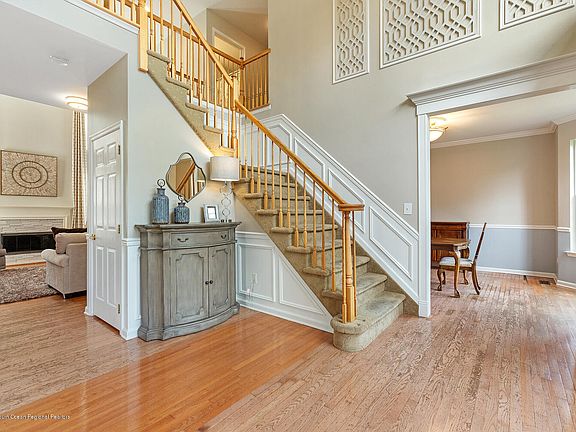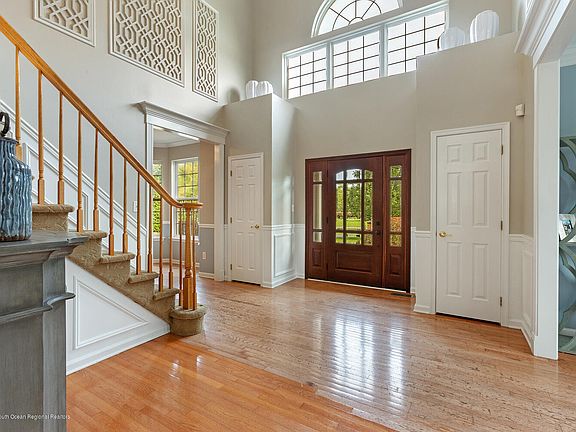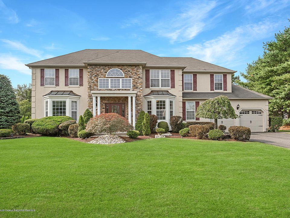 Original Owner selling his Gorgeous Custom 5-Beds, 3 F-Baths Colonial. This home features, 2-story Grand Foyer, Circular Oak Staircase. Living room w/ fine moldings, Dining room, Family Rm w/ two story high windows and vaulted ceilings with wood burning Fireplace & fine molding all around, Kitchen with Granite Counter top, Center Island, Stainless Steel Appliances, large fine wooden cabinets & pantry, 1-bedroom on the first floor or office room or Den, laundry room, full Bath, Hardwood floors throughout (need refinishing or replace on the 1st floor; credit given by the seller) Beautifully Finished Basement w/two extra rooms, 2-finished car garage. Almost 1.5 Acres lot, Half well manicured yard with a gorgeous wooden deck & half private Wooded area. Desirable neighborhood of Howell.