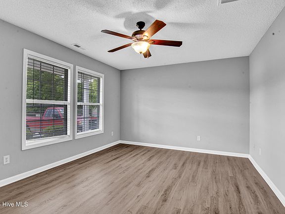 Very well maintained 3 bedroom home with large privacy fenced backyard close to the Air Station/Camp Geiger. Ceramic tile flooring in the Kitchen and Dining room. The kitchen has a huge closet pantry, access to the garage and sliding glass door access to the fenced backyard. The master bedroom has a ceiling fan, extra large walk-in closet with built-in shelving. The bath has dual vanities, linen closet and a tub/shower combination. The two additional bedrooms have ceiling fans and large closets. The backyard is fully fenced and has a shed for additional storage. Covered front porch. Easy commute to all area military bases!