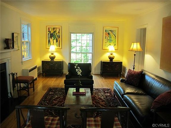 Stately brick & slate Colonial w/ a spacious light & airy addition South of Cary Street. Banquet sized Dining Room w/ chair & crown moldings, recessed lighting & hardwoods make this ideal for your entertaining needs! Formal Living Room boasts handsome built-ins, detailed fireplace, hardwoods & floor to ceiling windows. Light filled Kitchen includes an eat-in area, Sub Zero fridge, KitchenAid dishwasher, new Wolf cooktop, stunning Silestone counters & marble floors! Family Room off the Kitchen is perfect for today's open concept living. Upstairs leads to a generous Master suite w/ two walk-in closets, ample bathroom space & a picture window in the bedroom allowing for loads of light. Four additional bedrooms upstairs, all w/ hardwoods, as well as 2 more full baths complete the top floor. Full, finished basement has been B-Dried! Ideal for an in-law suite as it has a Kitchenette hook-up, full bath, bedroom & a recreation room. Exterior boasts box woods, screened porch & private, off-street parking. Additional features include generator, whole house dehumidifier, invisible dog fence, security system, ultraviolet air cleaning system, irrigation & professional paint throughout.