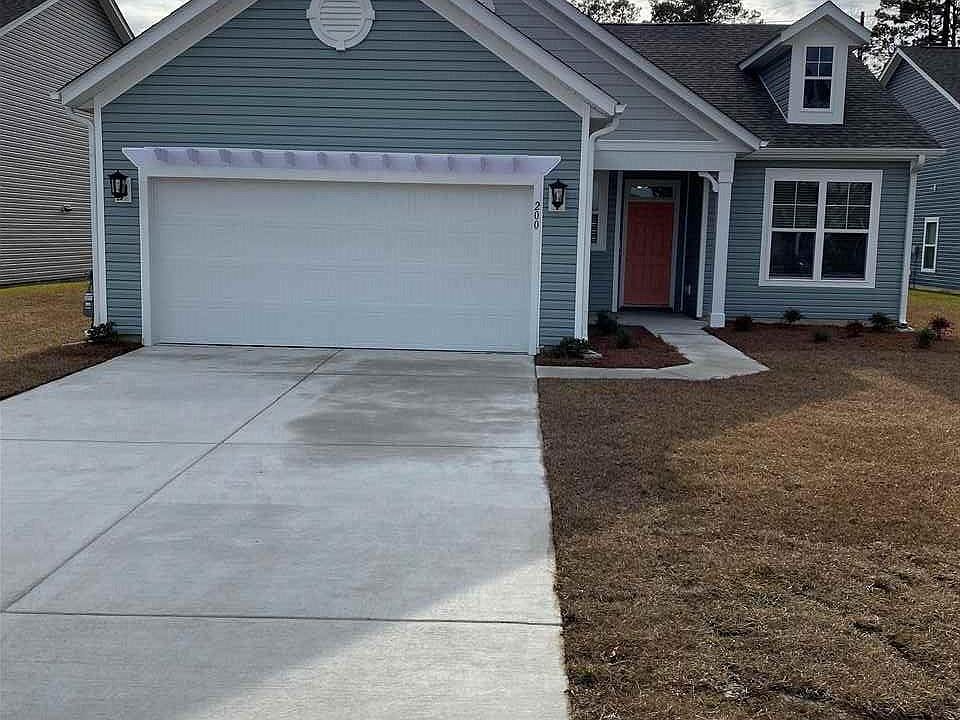 Welcome to Surfside Plantation, a charming coastal Beazer Homes community with Natural Gas and is located 3 miles to the beach. This home is the Camden plan and is under construction with an estimated November completion. 3 BD, 2 BA, 2-car garage home on 1 level. Vaulted ceilings, and rear covered porch are included. Rev Wood flooring in the main living spaces, ceramic tile in bathrooms and laundry, quartz countertops, white cabinetry, tile backsplash, and pendant lighting over the island. The kitchen is massive and is a must see! The master bathroom features a double vanity, walk-in closet, linen storage, and a 5' tile shower. Home is equipped with a stainless gas range, dishwasher, microwave, fridge, ceiling fans, blinds, and gutters. Nickel faucets and lighting throughout. Property will be fully sodded and professionally landscaped. *Pictures shown are from previously built homes. Listing details are subject to change. Please consult the on-site New Home Counselor for all details