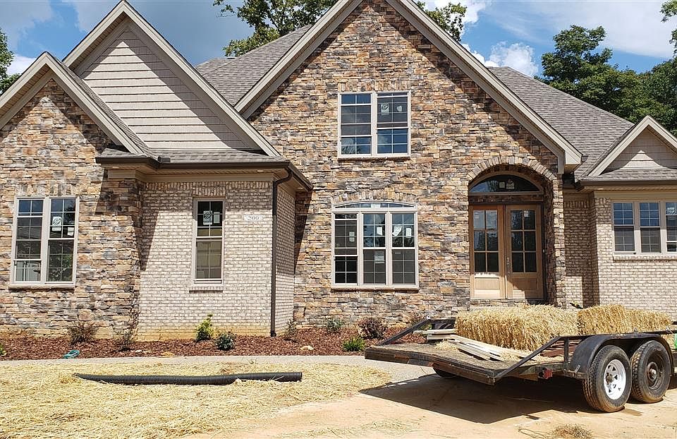 This home comes with all the amenities of a custom built home. Outside is all brick and stone. Built-In Cabinets, Shelves, Fireplace,Formal Dining Room Guest/In-Law Suite, Kitchen Island ,Laundry Room-Main Floor, Master Suite-Main Floor. This elegant French Country home features beautiful details and flexible spaces. A covered entry ushers you in through the foyer to the grand family room, which showcases a vaulted ceiling, built-in cabinets, and ample lighting. a fireplace provides a natural focal point. In the master suite, deck access, and a lavish bathroom create a soothing retreat. Also on this level, a private bedroom adjoins a full bath. On the second floor, three bedrooms with large closets share another bath.A loft can become another bedroom, while a bonus room provides even more space
