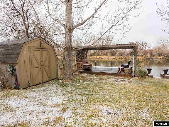 Custom built one level home located on the North Platte River! Beautiful fully landscaped 1.09 acre lot with tons of large cottonwoods, and permitted well for irrigation nestled in town on paved street. Plentiful deer, turkeys, ducks, and geese roam the lot with great fishing off your private dock. This home has cathedral ceilings with large Pella windows for 360 degree views. Attached two car garage with half bath as well as a detached 24x24 garage and tons of RV Parking. Grand Entry and Covered Deck!!