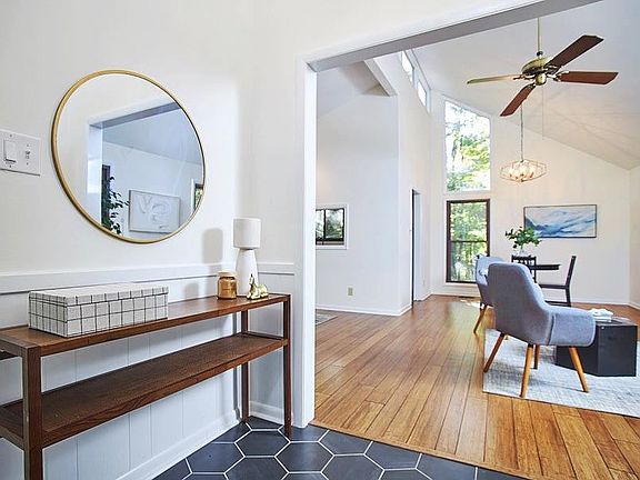 Tucked away in a perfect little corner of Carrboro, this one-level home in the picturesque hamlet of Barrington Hills is delightful and serene. Step inside to a bright and updated interior with plentiful windows that maximize the natural light. This gem has 3 bedrooms, 2 baths, and a spacious deck for entertaining or relaxing. It's also set up for Google Fiber! "Walk"-zone for McDougle elementary and middle schools and only a hop, skip & a jump away from all of Carrboro’s local restaurants & shops.