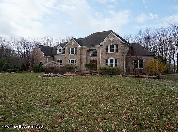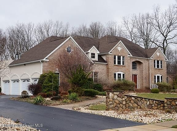 This estate home is not only One of Manalapan's only True Custom built Homes but truly has more to offer then any home in any zip code in Monmouth County. nestled comfortably at the end of a wonderful Cul-De-sac. Gorgeous Landscaping, and Fenced Yard. Home has Pond, In ground Custom Concrete Pool, basketball Court, raised 3 level Patio with Cabana bath and outdoor Kitchen! Dramatic 2 story Foyer, large Living Room, Formal Dining Room, 2 story Family Room with Gas Fireplace, Office, Conservatory, Family Sized Gourmet Kitchen, beautiful cabinets and a 9 Ft. Island. Master Suite with His & Hers custom Closets. 3 Sided Fireplace, and Balcony. Finished basement boasts, Gym, and so much more. One of a KIND MUST SEE!! PROPERTY IS BEING SOLD STRICTLY AS IS!!