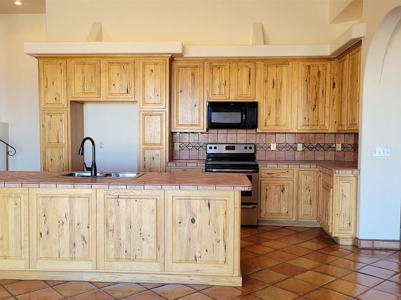 Enjoy spectacular views from this Santa Fe style home which has just been repainted inside & out, roof refinished, new light fixtures, toilets, ceiling fans & one of the two HVAC systems is being replaced. In addition to the 3 bedrooms there is a media/family room with a new fan. The covered patio has lots of room to entertain & views all the way to the mountains in Tucson. Nice architectural detail w/interior beams, archways, plant shelves & built in bookcase. Kitchen is spacious w/eating bar, 2 pantry cabinets w/pullouts. Knotty hickory cabinets & doors throughout plus high ceilings. Dual heating & A/C units. MB has walk-in closet, oversize shower w/dual heads & soaking tub. Private, gated courtyard entry with new tile roof. This is a must see!