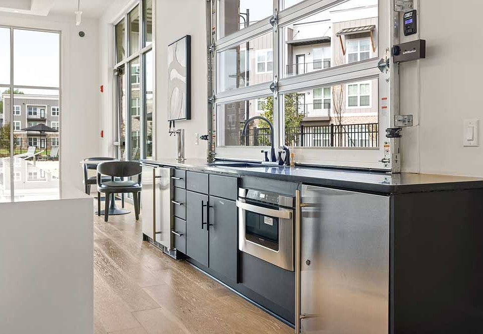 - Exterior features: 9ft High Ceilings, Availability 24 Hours, Barbecue, Business Center, Community-Wide WiFi, Complementary Coffee Bistro, Controlled Access/Gated, High-speed Internet Ready, Large Bedrooms, Package Receiving, Pet Park, Renters Insurance Program, Stainless Steel Appliances, View Type: Serene Views, Volleyball Court