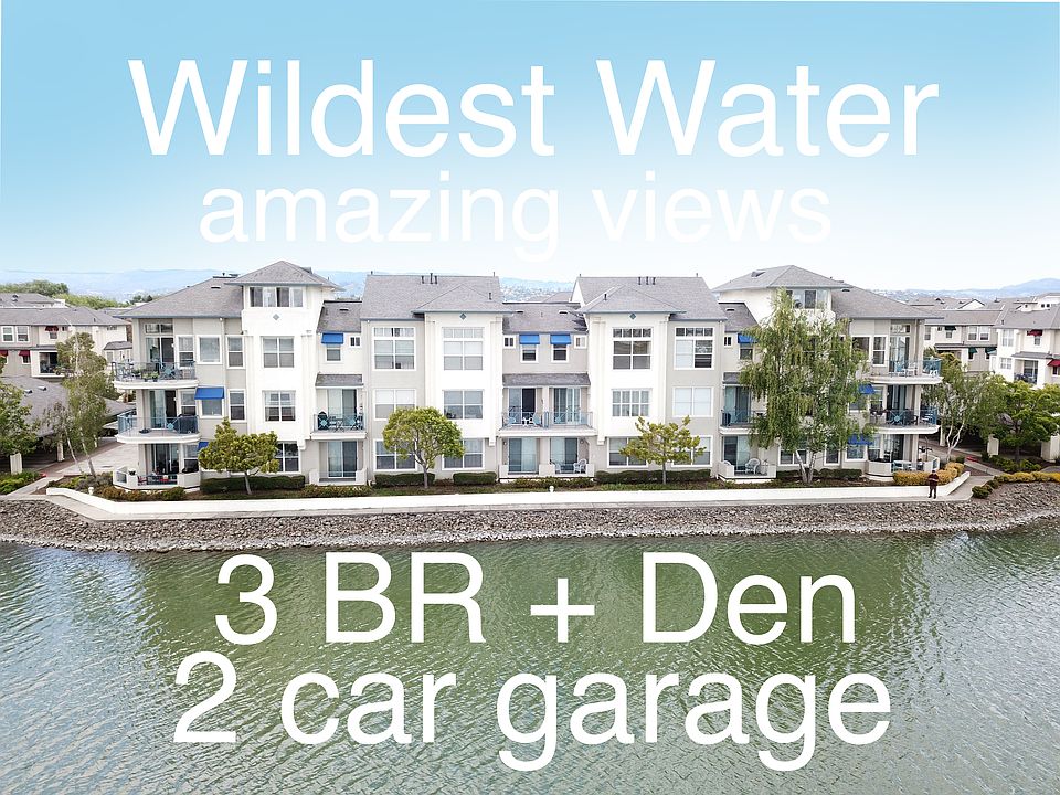 Absolutely Stunning! The best of Redwood Shores with impressive eastern views of wide water and Mt. Diablo beyond. Impressive high ceilings,natural light,oversized windows, Brazilian oak floors, and designer finishes. Formal entry and open floorplan leading to private balcony. 3 generous bedrooms including grand master suite overlooking the water. Separate office for work, hobby, or play. Eat in kitchen, updated with quartz counters and new stainless appliances. Inviting living room with gas fireplace. In-unit washer/dryer included. Large 2-car garage (deeded with the property). Established HOA - Ventana Del Mar - includes two hot tubs, pool, fitness area, walking paths, plenty of guest parking, water, garbage, and more! Highly sought after "Clipper" (1625 SF) floorplan - only 6 of it's kind within the community that share this view. Nearby parks, Bayfront trails, and outdoor activities. Easy access to 101 and public transportation. Highly rated Belmont-Redwood Shores School District.