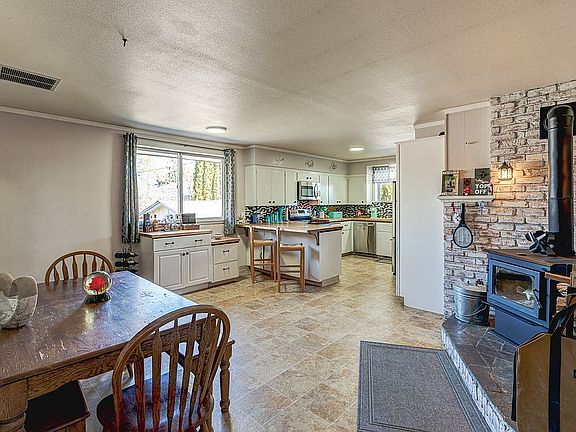 - Fireplace features: wood stove