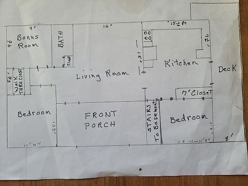 Address is 200 Bartlett Rd, Weaverville. Well Kept House, 20 Minutes North of Asheville. Overlooking large Creek. Large Kitchen, Large Living Room, 2 bedrooms plus small room for office or etc. Wood floors. Kitchen has Stove, refrigerator, dishwasher and lots of cabinets. (see floorplan and other pictures) Gas furnace, window air units. Inside stairs to mostly above ground basement with washer/dryer, 1/2 bath, work areas, and storage. Pets considered. Some yardwork required and appreciated. Please reply with income and other information. 1 yr lease, $1200 Deposit. Well water. Tenant pays electric, gas heat, and cable. Fee for approved pet. Shared trash pickup.