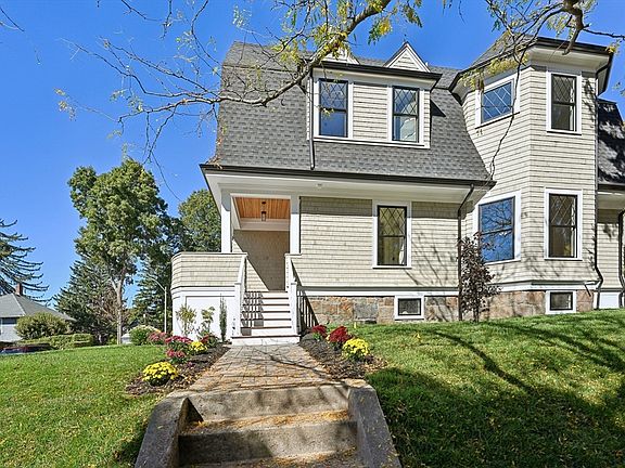 This is the one you’ve been waiting for! Elegant renovations have been done to create this luxury home, where original charm meets all the needs of modern-day living and entertainment. 10 rooms, 5 bedrooms, 2.5 baths on 3 levels of living. The 1st floor consists of a foyer with an open staircase, fireplaced living room, a powder room, a stunning chef's kitchen w/ high-end appliances, custom cabinets, a tiled backsplash, quartz counters, a large island, a pantry, and a modern open layout to the dining room featuring a wet bar. The 2nd floor has 3 large bedrooms, a laundry room, and the primary bedroom features a walk-in closet w/ custom shelving, a tastefully done bathroom with double sinks, and a beautiful walk-in shower. On the 3rd floor, you will find 2 bedrooms. The exterior and landscape have been completely overhauled with a patio, and a new driveway. The unfinished basement offers many possibilities and a convenient location near shops, restaurants, and commuter rail.