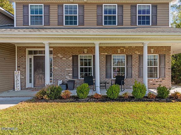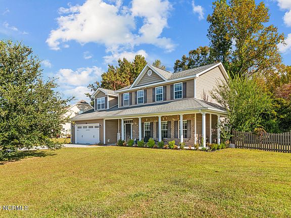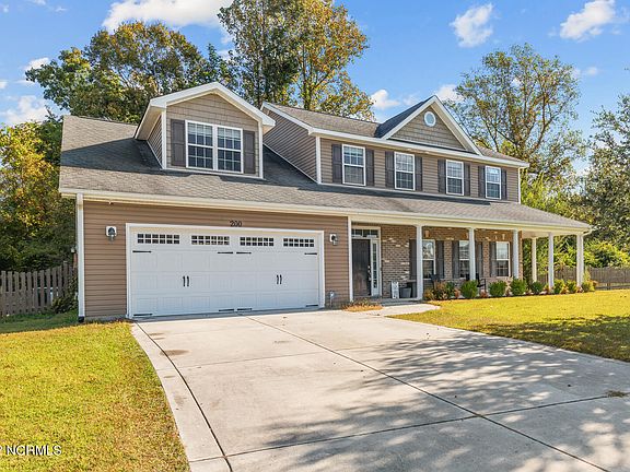 $3000 USE AS YOU CHOOSE FOR BUYERS! Welcome home to 200 Big Fish Run! This gorgeous 4 bedroom 2.5 bathroom home with a 2-car garage is situated in Jacksonville on an almost full acre corner lot. Prior to entering you will find a beautiful and cozy wrap around front porch. Upon entering you are greeted with a large and open living area, complete with a fireplace; great for family movie nights. As you continue through you will find a formal dining room, eat-in kitchen, half-bath and laundry area. The kitchen features a beautiful island, providing ample space for the chef in your family. Upstairs you will find four spacious bedrooms with, two which have a walk-in closets. The primary suite features an en suite bathroom with dual vanities, separate water-closet, a separate bathtub, walk-in shower, and a walk-in closet. The backyard is fully fenced-in and is the perfect size for your furry friends. This home won't last long, schedule your showing today!