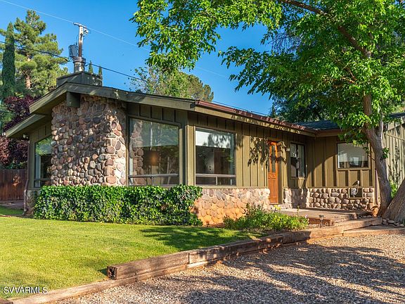 This welcoming mega cute tree-shaded and grass-cooled home is short term rental friendly and priced to sell quickly. Attractive wooden ceiling and river stone ornate fireplace. Great West Sedona location, a short distance from groceries, restaurants and hiking/biking trails. Home has a bonus 2nd dwelling (Not counted toward sq ft and bed/bath count). Property is on sewer and with natural gas. No HOA.