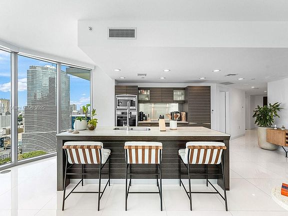 Experience unparalleled luxury and sweeping vistas in this exceptional residence at Epic Residences. This rarely offered unit showcases the best views of Downtown Miami and the Brickell skyline, framed by floor-to-ceiling glass walls and an expansive balcony overlooking the city, river, and bay. Inside, discover a meticulous renovation with white porcelain floors and elegant Italian-inspired finishes. The chef's kitchen features premium Miele and Sub-Zero appliances, blending performance and design seamlessly. A rare highlight three parking spaces, including two secure and one valet. Residents enjoy five-star amenities: full-service spa, fitness center, resort-style pools, on-site dining, 24/7 concierge, valet and a full marina luxury waterfront living at its finest.