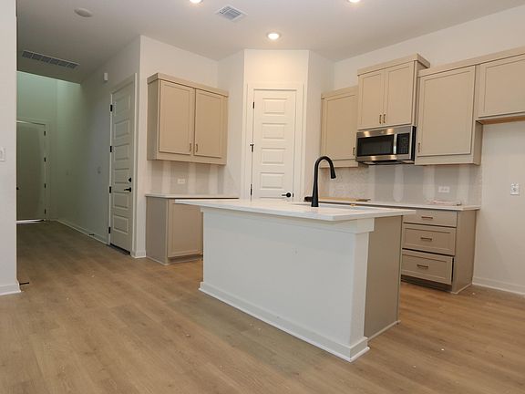 The two-story Brahman plan offers a thoughtful layout with primary bedroom on the main floor, a dedicated study, and open living spaces designaed for everyday comfort. The kitchen features quartz countertops, a generous island, and a seamless connection to the dining and family rooms. All bedrooms include walk-in closets, and the upstairs secondary bedrooms share a large game-style landing for flexible use. Enjoy 10' ceilings and 8' doors throughout the first floor, plus a private back yard with greenbelt views. Located in Heritage by M/I Homes in Dripping Springs ISD with community amenities.
