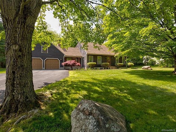Custom Delahunty built, original owner Cape offering hardwood floors thruout is situated on a level landscaped in the Blue Hills neighborhood. The kitchen offers a trio of work stations including a center island, desk area, 2 pantries with slide-out drawers, an abundance of cabinets, granite counters and breakfast nook that opens to the family room with wood burning fireplace and new slider to backyard patio. There is a 1st floor bedroom/office with an adjacent remodeled full bath, granite counter vanity and new subway tile shower with glass door. The 2nd floor features front to back master bedroom, walk-in closet with access to remodeled full bath, double sink vanity with blue granite counter, new subway tile tub plus laundry area. 2 additional bedrooms complete the 2nd floor and all 3 bedrooms have new carpeting. Lower level features office/workout room in addition to a great rec. room with plenty of built-ins. Natural gas hot air heat along with central air & attic fan to keep you cool all summer long. The attached 2 car garage has stairs to 2nd floor storage, great future expandable feature. The .95 acre lot offers private backyard with your own covered bridge storage area taking you to a large clearing, great for all your outside activites, baseball, soccer, etc. Minutes to Mountain Grove Swim Club offering swimming, tennis and all sorts of family activities. Come see all that Southington has to offer Let us open the door to your new home