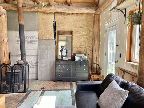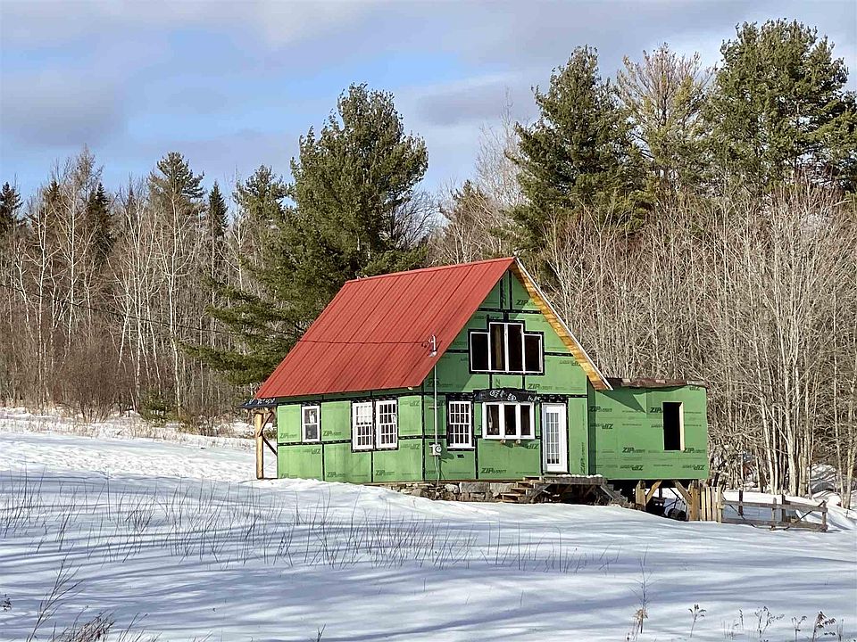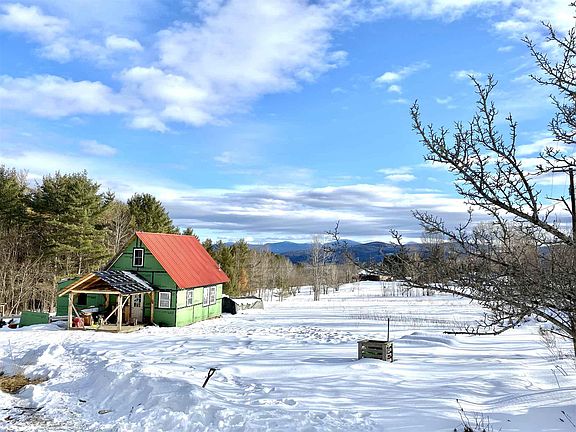 Sited on 10.1 acres, this rustic cabin is in a terrific location offering a great view of the NH Presidential Mountain Range. Open living room / kitchen / dining area, with a loft. The cathedral ceiling boasts hand hewn, hand notched beams. A wall of windows faces the mountains. A 16' x 20' addition for 2 additional bedrooms needs a roof and finish work. Although there is a small wash room with a compost toilet, there is a State Approved Septic Design dated 2016. Currently there is no running water. A Fisher Wood Stove easily heats the entire home. The yard offers ample garden space, blueberry and strawberry patches, and lots of perennial herbs and flowers. Enjoy direct snowmobile access in the winter.
