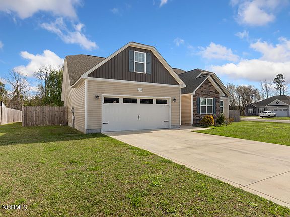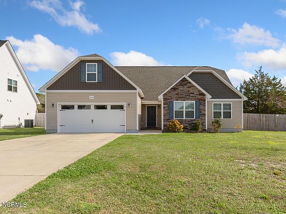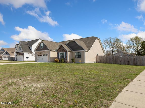 Welcome to this charming home located on a spacious corner lot in a quiet cul-de-sac! This modern 3-year-old home features 3 bedrooms, 2 full baths, and a bonus room over the garage - perfect for an office or playroom. Step outside to enjoy the privacy of the fenced-in backyard with a patio, ideal for grilling and entertaining. Plus, no city taxes here! Conveniently situated within 5 minutes to New River Air Station, grocery and convenience stores, and a short 25 minute drive to North Topsail Beach. Don't miss out on the opportunity to call this home yours!