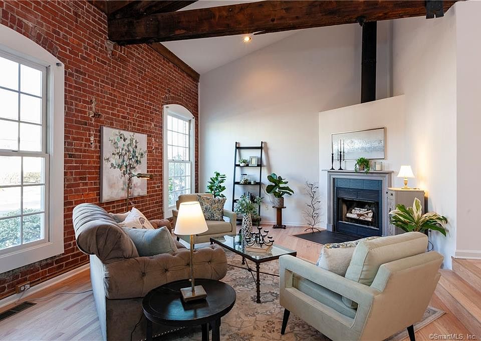 Industrial style condominium with soaring ceilings, exposed brick, and rustic beams. A glorious space to call home. This unit is not a drive-by. The last of four self-managed condominiums is available for sale. Beautifully remodeled unit within walking distance to the Guilford Green. Natural gas soon to be installed by the end of January at Seller's expense. Private patio with walls of brick and white picket fence door. Attached garage and city water. Live a simple and unique lifestyle in a great location for walking to the iconic Guilford Green with a variety of restaurants and local boutiques. Guilford Community Center and Guilford Art Center are just a sampling of the treasures found in this community.
