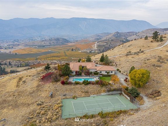 Custom home built by local builder, Chelan Valley Builders. Mediterranean in style with a wonderful courtyard lined with a handmade trellis interwoven with old growth wisteria trees. High end construction with true timber framing and all custom wood doors and windows. All one level with a pool and tennis court. Big views of the lake facing southwest. All of the serenity privacy affords. Large 3 car garage with an additional boat bay.