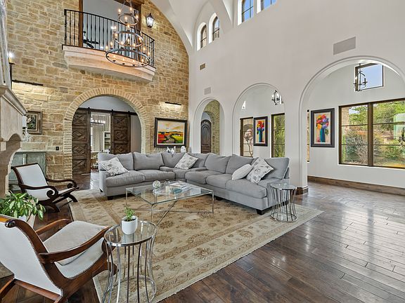 Step into the exquisite Euro-inspired farmhouse meticulously crafted by the esteemed Vanguard Studios & Heyl Homes. This awe-inspiring residence showcases a seamless fusion of transitional interiors and timeless exteriors, thoughtfully designed to create the perfect setting for sophisticated entertainment. As you wander through the residence, you will be captivated by the artful details, including groined ceilings, stunning floors, and inviting, open spaces that exude warmth and elegance. The living area boasts cathedral-style ceilings, elevating the sense of grandeur, while the true gourmet kitchen stands as a testament to culinary excellence. Adjacent to these marvelous features, you will discover a host of neighboring entertainment spaces, such as the formal dining area, a game room complete with a full wet bar, a spacious office, and the private owner's suite offering breathtaking views from every vantage point. Step outside, and the backyard beckons with its multiple entertaining areas, carefully designed to host memorable gatherings. You'll be drawn to the negative edge heated pool and spa, where you can unwind and take in the awe-inspiring vistas that surround this exceptional property. With its unrivaled charm and beauty, this Euro-inspired farmhouse presents an unparalleled opportunity to embrace the art of gracious living. Private gated property In Seven Oaks and Eanes ISD.