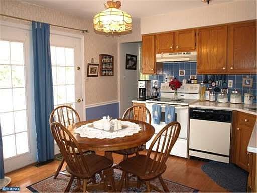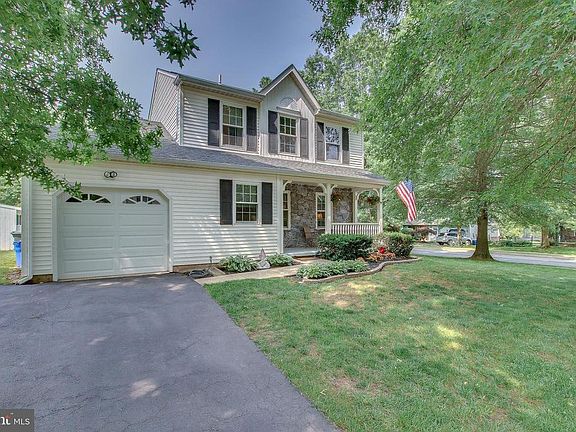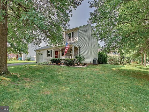 Beautiful 3 Bedroom, 1.1 bath, 2-Story Colonial on gorgeous corner lot in Wyckford Commons. Wonderful large covered front porch with stone facade welcomes you into the formal entry with ceramic tile flooring. Formal living room with two oversized double hung windows and wall-to-wall carpeting. Wall-to-wall carpeting continues through custom cased opening to formal dining room. Dining room features twin window, crown molding and opens to eat-in kitchen. Kitchen features beautiful hardwood floors. Solid oak cabinetry, corian countertops with under mount stainless steel sink, Ceran top range with overhead hood. Tile backsplash and built in GE Profile dishwasher. Eating area with sliding glass doors open to custom 2-tier deck overlooks beautiful private backyard with shed. Newly renovated powder room with new vanity, custom mirror and new toilet. Master bedroom with triple closets, ceiling fan and newer wall-to-wall carpeting. Completely remodeled hall bath features new custom vanity, custom tile surrounds tub/shower combination. Separate linen closet and new floor. Two additional roomy bedrooms with ceiling fans and wall-to-wall carpeting. Fully finished basement with ceramic tile flooring. Additional improvements include eight replacement windows, newer central air and heat pump. Roof replaced in 2012. One-car attached garage with opener. Move-in condition!