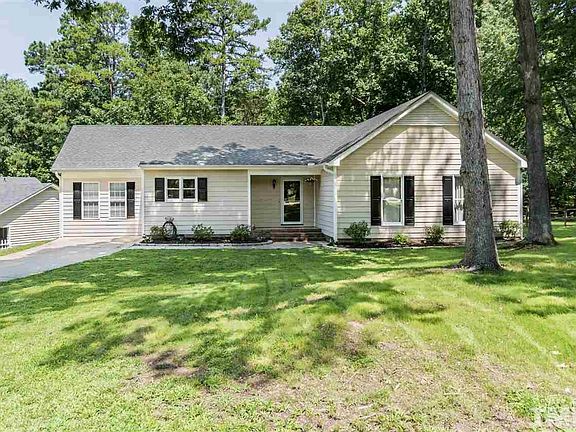 Come home to your own retreat! Well built, updated RANCH just minutes to 540 & shopping! UPDATED 4 bedroom, 2 bath home! Enjoy the stunning outdoor woodland views from every room! Updates include laminate hardwoods throughout, carpet, sinks, fixtures, tile floors, bath vanities & more. Renovated Kitchen w/granite counters & stainless appliances opens to bright dining room! Open family rm w/FP. Master w/HUGE WIC, private bath w/tile floors and granite vanity. Extended deck overlooking .37 ac. NO HOA DUES!