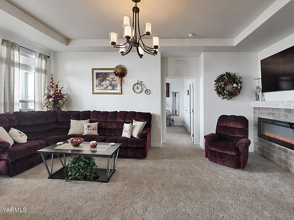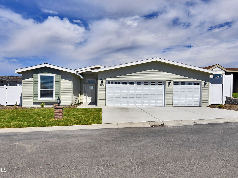 55+ Gated community with clubhouse, pool/spa, and on-site managers. Home has upgraded appliances, electric fireplace plus 3 car garage