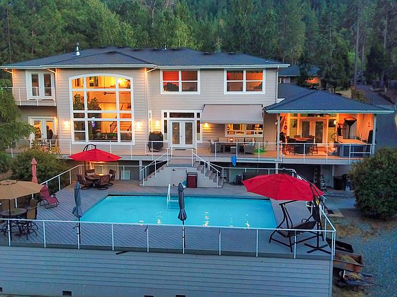 Riverfront Masterpiece. Large very custom home with expansive views of the rogue river and mountains situated on a quiet lane. This is a gorgeous property that has everything you would want and expect for a river front McMansion. Including gated entry, guest house with two car garage, waterfront views from almost every window, Soaring ceilings and massive fireplace. The master is on the main level and there are are both a bedroom and an office on the main floor and three more bedrooms with river scenes upstairs. This has it all and could not be replicated at this price! Come take a tour today.