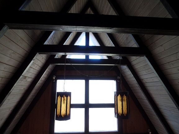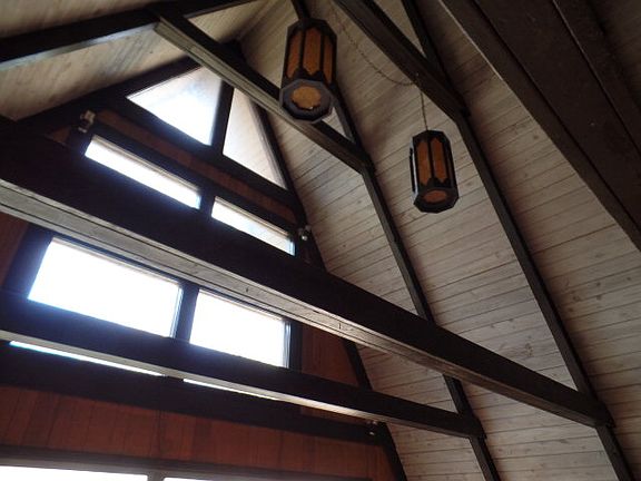 Handyman special. Chalet sitting on a nice creek tucked in the woods. Lots of potential and space with 3 bedrooms 2 baths in the main living area and another bath in the large unfinished basement with garage. Soaring Vaulted ceilings with wood beams and open floor plan. Needs work but some upgrades have been done including a newer roof, new outside stairs. Their is another Chalet on the other side of driveway also for sale and is in move in condition, great to buy both, live in one and rent out the other.
