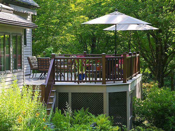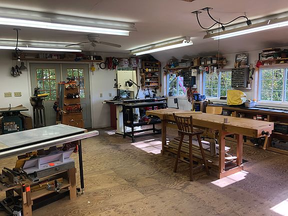 This meticulously maintained home is sited gracefully on a hillside surrounded by extensive gardens, stone landscaping and stately large maple trees. The house has many features designed to bring the outdoors in including large windows, an expansive deck, a sunroom and an enclosed porch. The kitchen is open to a sitting area, the dining area and the deck. The 3 bay detached garage has a second floor set up as a wood working shop and small office.