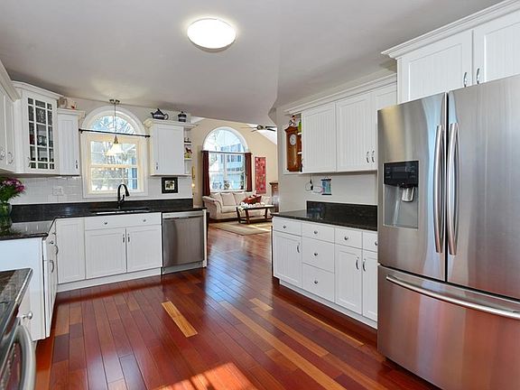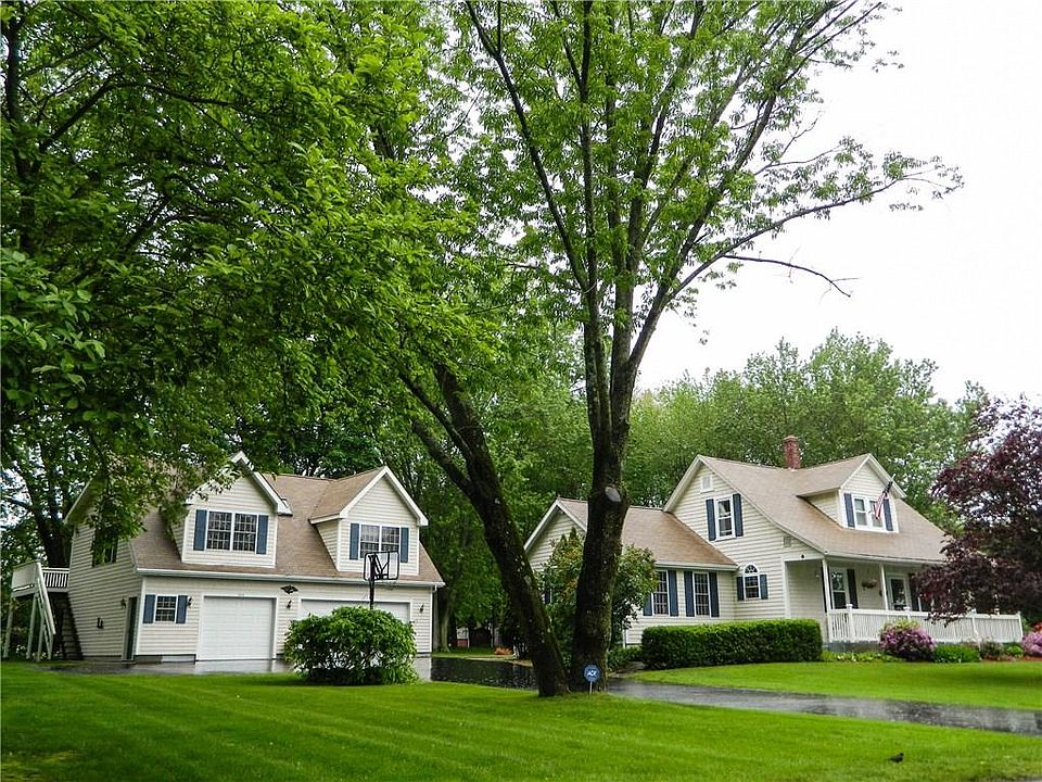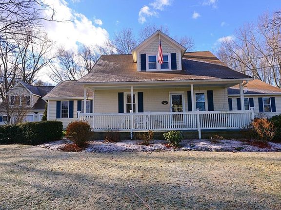 Pride of ownership in this beautiful Remodeled Country Cape - Detached 3 Car Garage with Full 2 Bed In-Law Apartment- Separate Electric - Heated Garage space with laundry room & half bath. Built in AC unit & Ceiling fans. Cape has Newer Master Suite Addition with private Whirlpool Bath, Walk in closet and sitting area. Also has a newer Living Room Addition with Cathedral Ceilings and propane Fireplace. Walkout to large private Deck. Hardwood Floors throughout. Updated Granite Kitchen, Stainless Steel Appliances, double sink. Ample cabinets for storage. Opens to Dining Room, and office area. 3 Upper Beds with hardwoods & Full Bath. New Warm air furnace in Cape. In-law has hardwood floors and updated Kitchen & Bath. Baseboard oil heat. Town Sewer with private drilled well. Shed, large level landscaped lot. Centrally located.