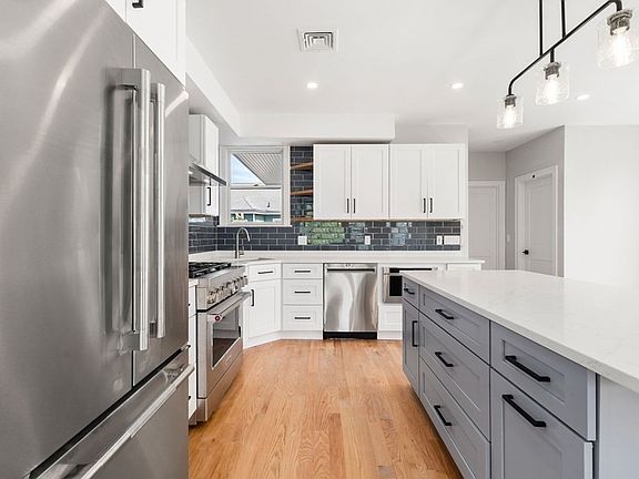 Welcome to 200 Byron Street, No. 2; BRAND NEW, luxury penthouse duplex in the Orient Heights neighborhood of East Boston. Fully renovated in 2023, this 1800+sqft, 4bed/3 full baths, spans across 2 living levels. Entering the unit, the foyer with tasteful built-ins & bench seating, welcomes you to a rare, wide staircase, leading to the expansive main living level. The living room, complete with light oak hardwood flooring & a gas fireplace with dark accent trim, overflows with sunlight. The kitchen features SS appliances, white shaker cabinetry & trendy quartz countertops. A generous sized bedroom & full bathroom, complete the main floor. Add’l custom built-ins along the staircase up to the penthouse level, where you will find 2 more sun drenched bedrooms & full bath, featuring designer finishes. Lastly, a stunning primary suite with a private deck, showcasing water & city views! Add’l features include side by side washer & dryer, central air & off-street parking for 1 car.