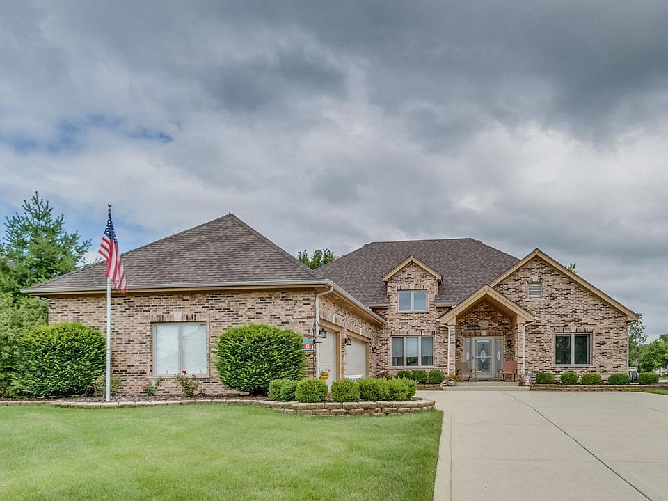 Spectacular spacious ranch home with vaulted ceilings, hardwood floors & plenty of room to spread out! Magnificent curb appeal! All brick front exterior with a long driveway into a 3 car garage! New tear off roof & skylight. 2-story vaulted ceiling in foyer, dining & family rooms. Bright kitchen has all SS appliances, newer 5-burner oven/range, lots of cabinets & pantry. Floor-to-ceiling windows & glass door in bayed eating area. Newer light fixtures. Dramatic tray ceiling in luxurious Master Suite. Whirlpool tub, glass shower and fabulous walk-in closet with furniture style closet organizers. 2nd & 3rd bedrooms located on opposite side of house from MBR. Ceiling fans in all BR's & family room. Vaulted hall bathroom w/skylight, ceramic tiled floor & new commode. Convenient 1st floor laundry room w/cabinets & sink. New washer & dryer. Private yard with new fence & paver patio. Attached 3-car garage! Near park, trails & District 308 schools.