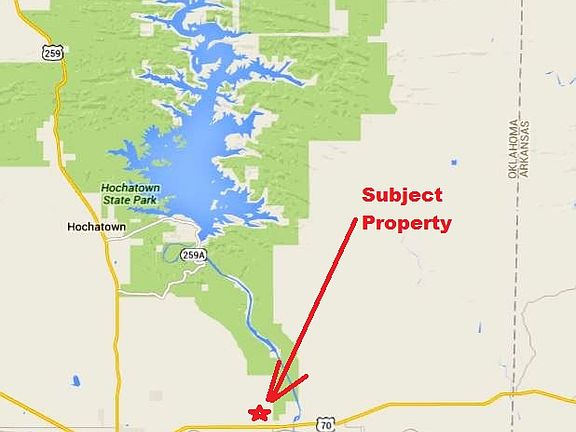 Ten acres 335.5 feet by 1321 feet. Planted in timber in 2009. Water and electricity on road. Five miles east on Broken Bow. Near Mt. Fork River and Beavers Bend State Park