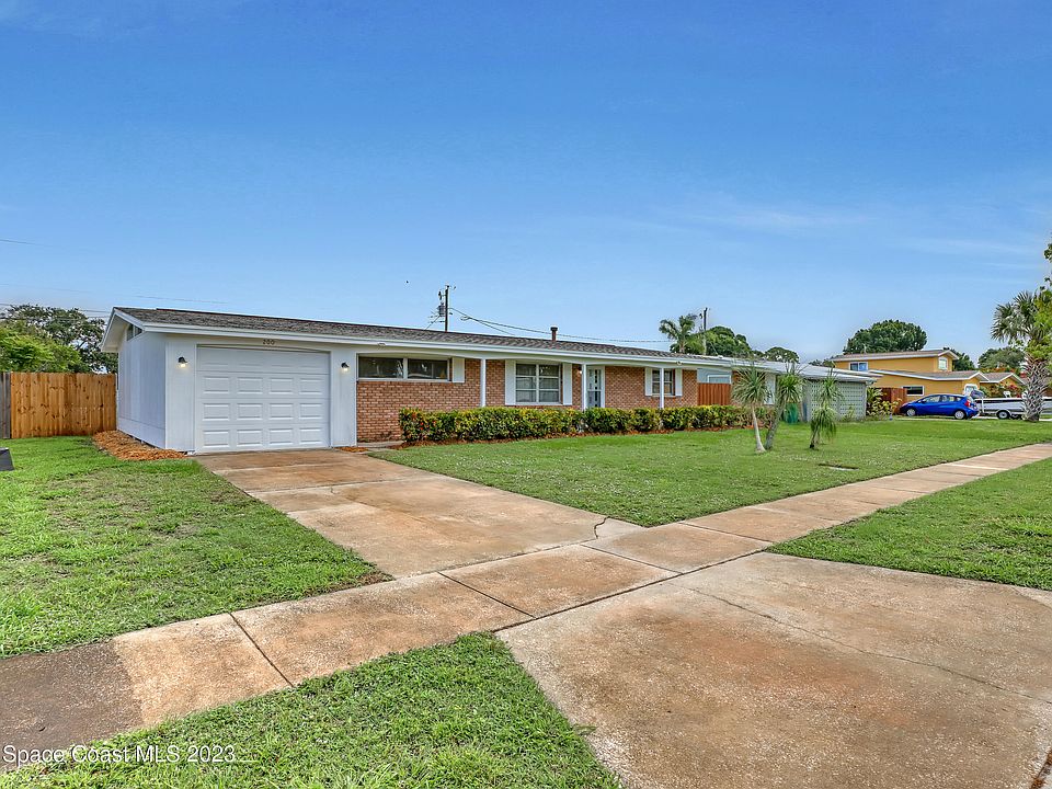 This charming, well maintained, attainable, home, offers the discerning buyer the ideal house to start a family, retire, or to begin building a real estate portfolio. This split bedroom floor plan allows for privacy, while the open floor plan in the living/kitchen area allows family, and guests, a space to connect. The large, fenced in backyard is perfect for family gatherings, kids to play, and pets to run free. The garage has a large, enclosed storage room with a workbench. Located just south of Rt. 520 off of S. Courtenay Pkwy in the Belaire subdivision. Minutes to Merritt Island Square Mall, Historic Cocoa Village, and to Cocoa beach. NEW ROOF 2019, NEW AC 2012, freshly painted and landscaped.
