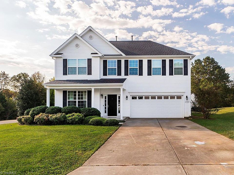 Welcome to this charming 2-story home nestled in Carson Farms, near Springwood Park, Target & I85/40! Boasting an inviting open floor plan, the main level seamlessly integrates the living and eat-in kitchen areas. Well-appointed kitchen is a chef's dream, featuring granite countertops, a stylish tile backsplash, and SS appliances. Island provides additional prep space and pantry provides additional storage space. Flex space on main level can serve as dining/office. Upstairs, a spacious loft area leads to four BR's & two full baths. Master suite is a true retreat, with a generously sized private bathroom complete with a walk-in shower, WIC for ample storage, and a dual vanity. Another practical feature is the second-floor laundry, making household chores a breeze. Covered patio over looking backyard.